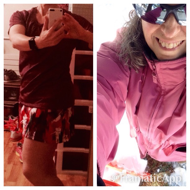 Above you can see how the hair looks after being pulled back in a ponytail and under a hat for run on the left — and how good it looks after a haircut. I wish I could make it look that good all the time.