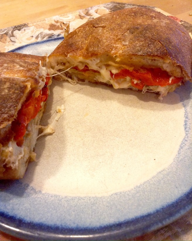 Then this carbolicious eggplant panini for dinner. I didn’t realize the eggplant would be breaded.