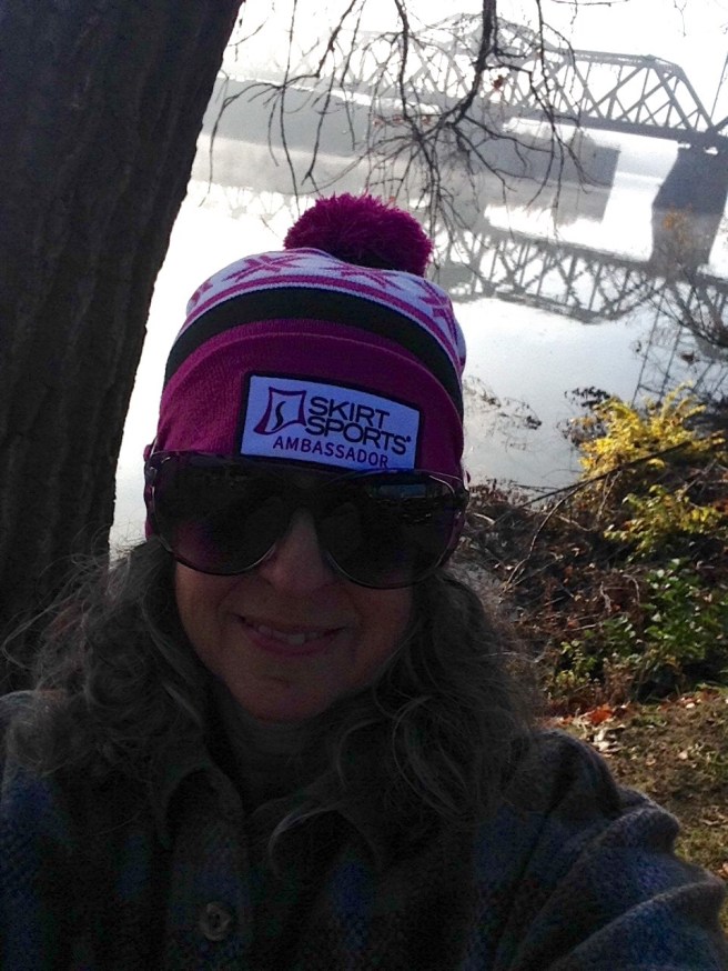 It was a foggy and chilly 30 something when I got there, and probably around 40 by race start. I dressed much lighter than last year (although I never took a photo of the outfit, bad blogger!). I wore a Skirtsports free flow long sleeve top (love this top!) and lotta breeze capris in frolic with CEP compression sleeves and my Newton Gravity IIIs. I topped it all off with my I Run Like a Girl jacket (it seemed appropriate).