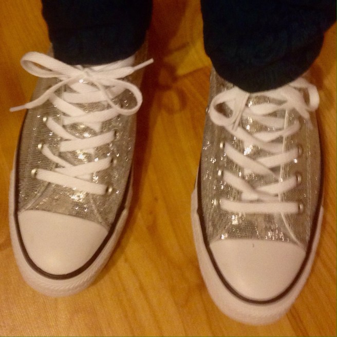 My sparkly converse (even if there is now glitter all over the house). Cute and comfortable. They also matched the placemats I bought almost last minute — I really liked them, too!