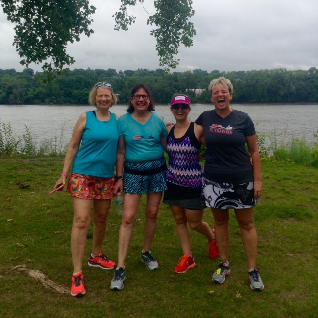 Yay for Bandit’s anniversary — and relatively uneventful trip to the vet! Your running friends are rocking their skirts! I’m loving mine this summer too.