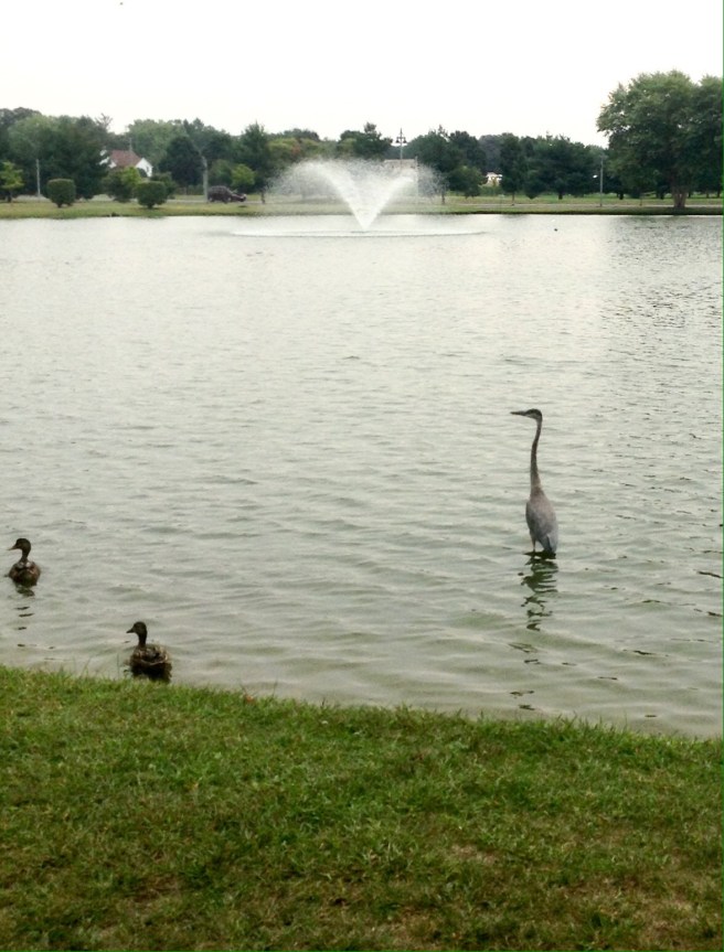 I have seen herons around at times, but never at the park before. Those poor koi. 😦