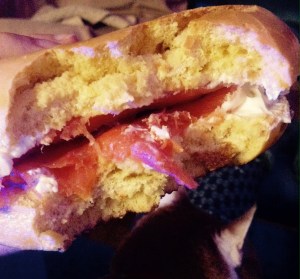 An egg bagel the size of my head with cream cheese and lox makes a perfectly good race morning breakfast. Breakfast of champions?