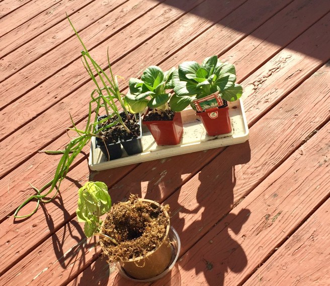 Seriously, I don’t do that much of a gardening. Right now it’s just stuff that came back, the bok choy, and I have some onions waiting to be planted.