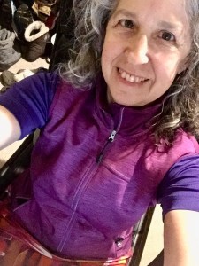 Sorry for the venting — but to end on a positive note, here I am in the Skirt Sports Toasty Vest, because I was dressed for warmer weather (it’s supposed to warm up – eventually it got quite warm) — I went out with the dogs in just a skirt and tee (and jacket, thankfully), but back inside I needed something warmer! I just love this vest so much.