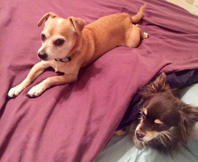 Your dogs are so cute! We had to clean up dog barf yesterday too. Luckily it was on the kitchen floor, which is cork and easy to clean. If it had been on a rug, I would still be scrubbing. The things we do for our pets! 🙂