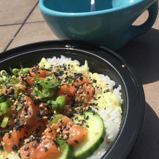 I didn’t make the poke bowl. That was our delivered lunch! Well, mine, anyway.