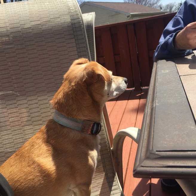 Bandit wanted some too (but didn’t get anything; he got some dog treats eventually)