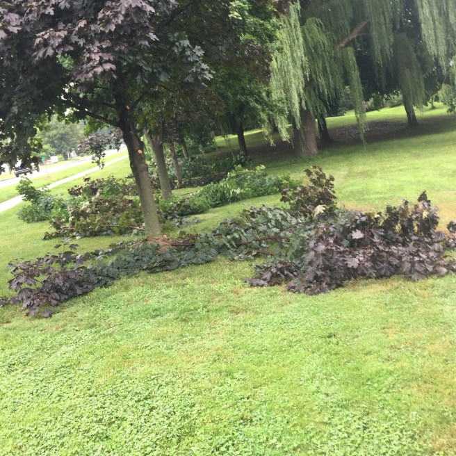 They often lose power at my mom’s place, and they’re basically out in the middle of nowhere. But they’re also further south, and I think it had begun to peter out somewhat as it got to us. It was just a soaker. All day. We don’t get that that often — thankfully!