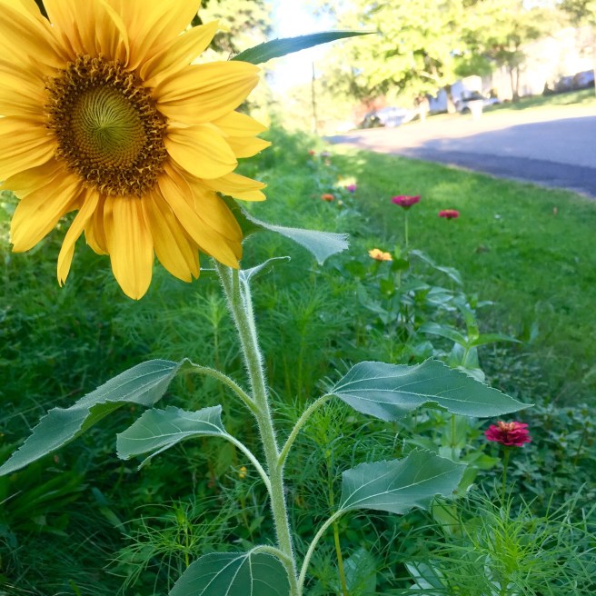I’d tell we’ve been watching these flowers grow all Summer. They tilled 3 rows outside their fenced in yard, which seemed weird. It kind of looks like flowers with herbs planted between rows of flowers. Did they just not want their dogs to eat the flowers? Inquiring minds want to know!