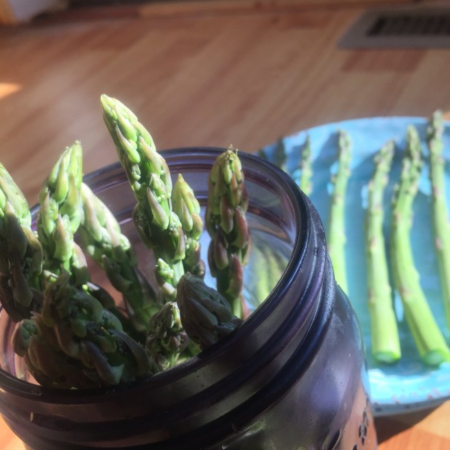 I know that sticking asparagus into water is supposed to keep it fresher longer (did you?), but I never did it. Until this Summer. Guess what? Yup, it stays fresh much longer that way! Why do we resist things?