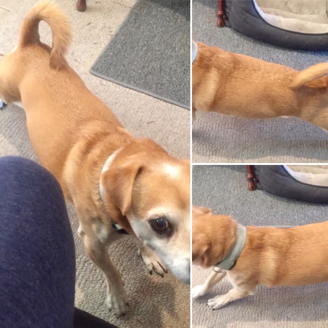 As I go downstairs to let Bandit out first thing in the morning, that stretching can get downright annoying. Stretch when he gets up from his bed. Stretch when he gets to the landing. Stretch a few times before he ever goes out.