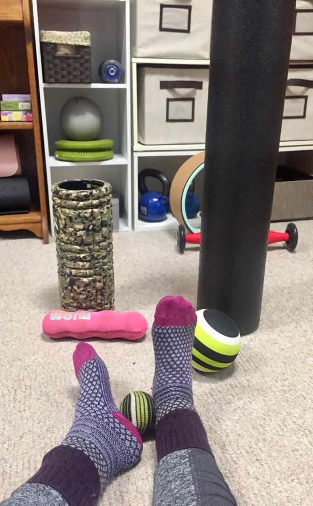 I am fascinated by all your foam rolling tools. Not only that, you have a nice set of weights, too!