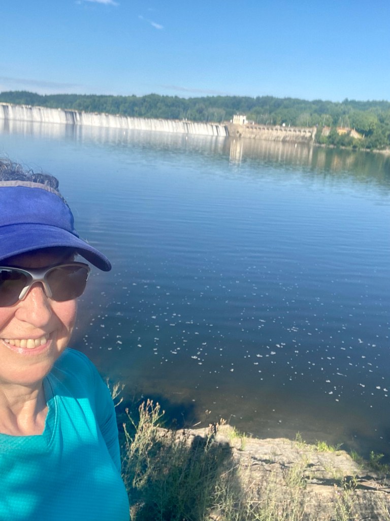 Remember that lock that I stopped to walk across and photograph in the middle of a long run on the bike path a couple of months ago? Yup, that’s the very same lock I can see from across the river on the trails (see photo above). Hey, I’ve only lived here 13 years!