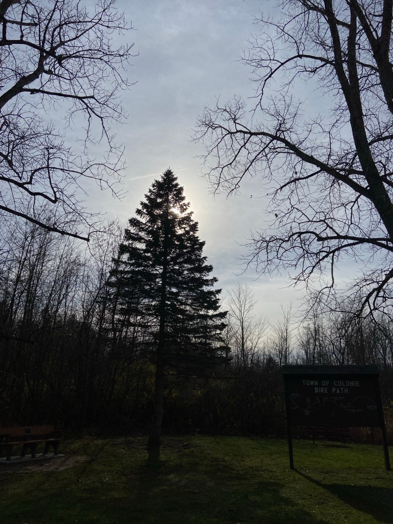 No, I wasn’t running in the dark — it was just cloudy and the sun was behind the trees. This run was negative splits and despite the chill in the air felt really good!
