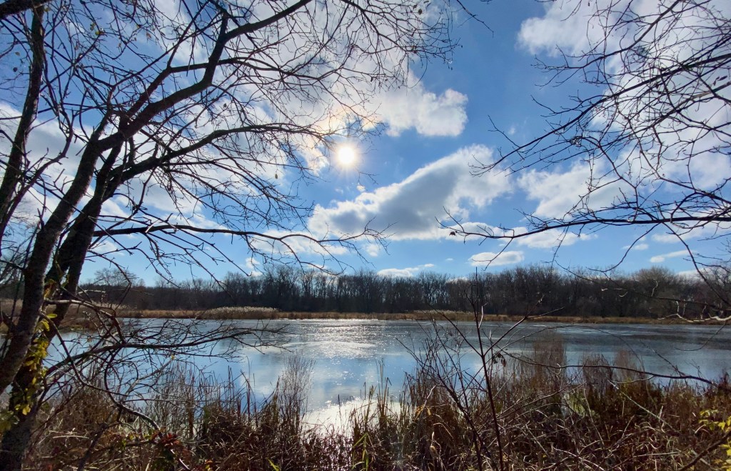 We were forcast to get about 1-3 inches of the white stuff this week, but it was only about an inch and it didn’t stick around (although we have a dusting again this morning). I decided to explore a trail off the mail trail at this preserve. I scared off a couple of deer. This was a more technical trail and it had gotten cold overnight, so I took it very easy.