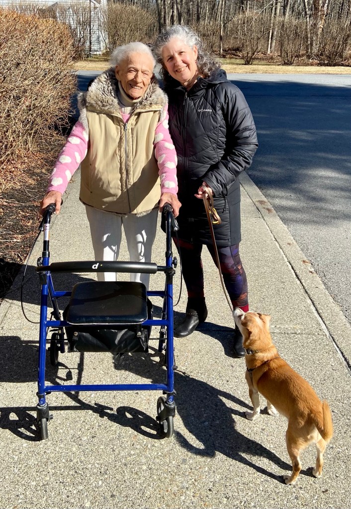 It was a quick visit to my mom. We brought pizza again — she wants it but then is never really satisfied with it. I tried. She did love the roses I brought, and a few other things she’d requested. Plus I actually got her outside, briefly.