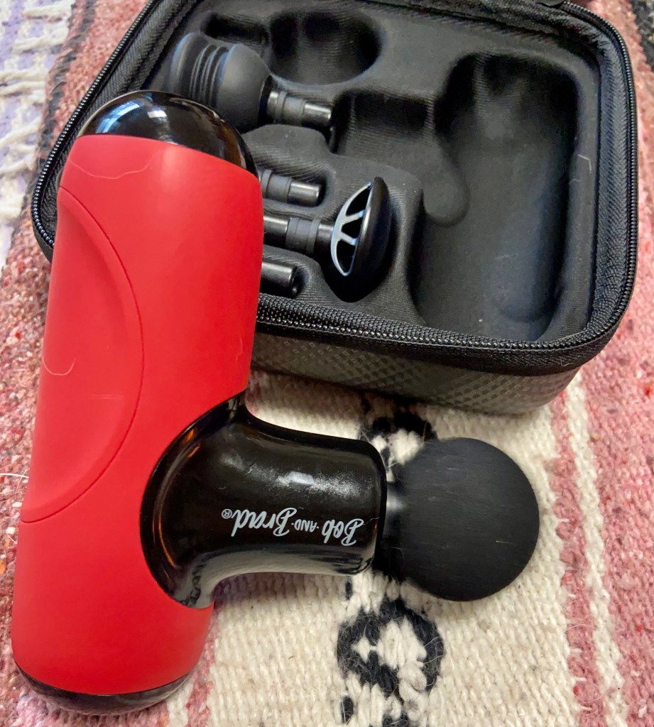When the team at Bob and Brad (two physical therapists) reached out to me to try their mini massage gun, I jumped at the chance. Have I long wanted a massage gun? Yes! Do I own what seems like every other myofascial relief tool? Yes! Well, not really; there are tons!