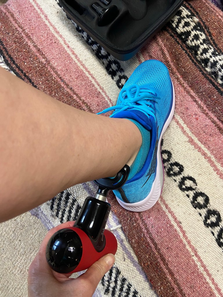 Thanks to Bob and Brad, I now own my very own mini massage gun and have been using it a bit over a month — when my Achilles tendon started acting up last month (just a bit), this massage gun totally took the ache away — even after some steep downhill runs.