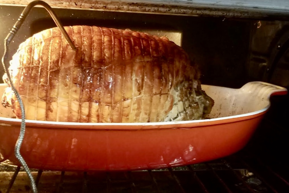 I’d tell you the plan had been to cut it into several sections, freeze one or two (for New Years) and cook one section. Except as you can see it above it come in its own webbing. So we cooked the whole thing in our toaster oven. Very easy.